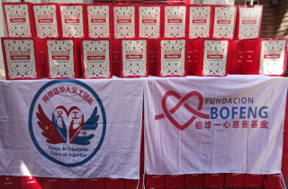 陈凯龙接着说道:新冠疫情发生后铂烽一心慈善基金会更是捐款捐物600多万阿币采购核酸试剂和防疫物资支持祖国和当地抗疫工作,为祖国和当地抗疫工作作出应有贡献。去年同期也联合华人超市Seven Market携爱心物资前往科尔多瓦省玛丽亚镇(Villa María)市贫困地区,为当地22家社会慈善食堂和贫困儿童送上了圣诞礼物。