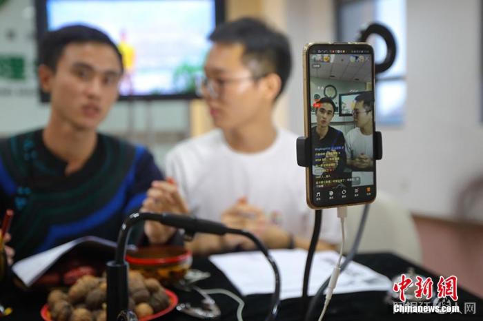 资料图:南京支教大学生“直播带货”。泱波 摄