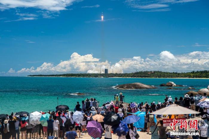 资料图:7月23日12时41分,中国在文昌航天发射场用长征五号遥四运载火箭成功发射首次火星探测任务天问一号探测器。骆云飞 摄