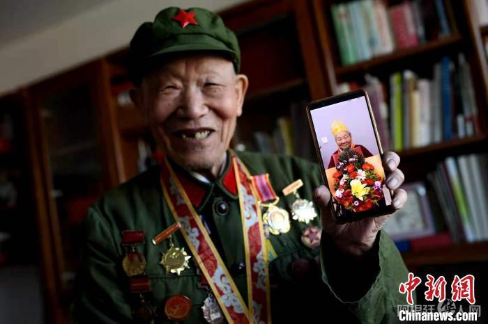 图为87岁抗美援朝老兵贾振鑫拍摄的抗美援朝老兵过生日的照片。 武俊杰 摄