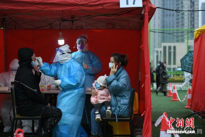 资料图:11月21日,天津市滨海新区居民在天津开发区第二运动场检测点进行核酸检测。 中新社记者 佟郁 摄