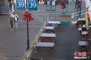 资料图:当地时间12月7日,美国加州旧金山渔人码头一家餐厅停止提供户外就餐服务。中新社记者 刘关关 摄
