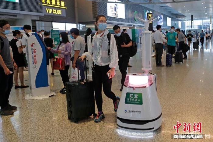 资料图:消毒机器人正在上海虹桥机场T2航站楼内消毒。 殷立勤 摄