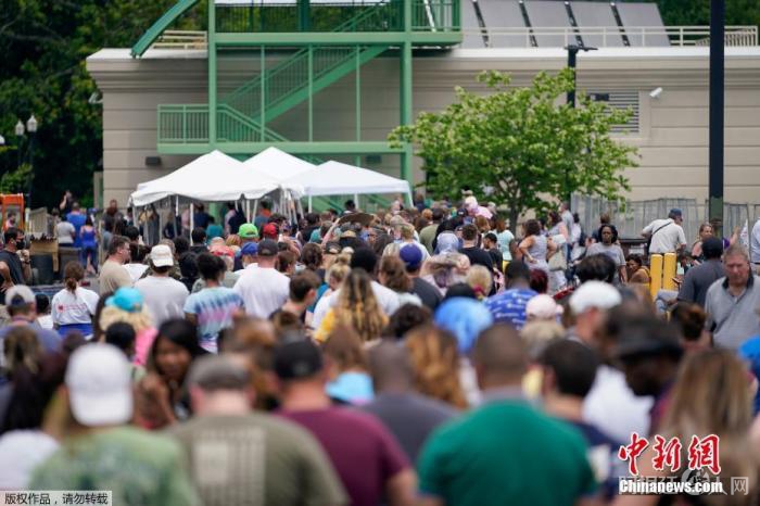 当地时间6月17日,美国肯塔基州国会大楼外,上千名在疫情期间失业的美国民众排队等候进入大楼。