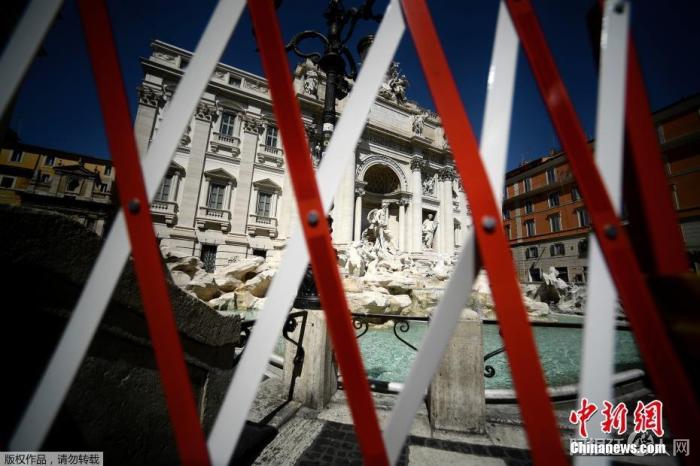 资料图:罗马市中心特莱维喷泉前的一道封锁栅栏。