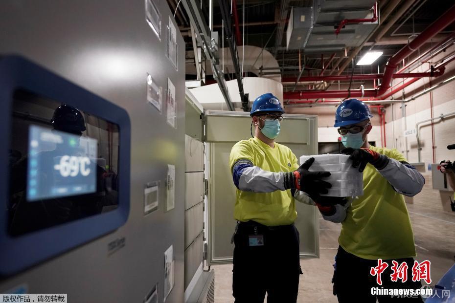 辉瑞疫苗在全美展开配送。图为工作人员在装运疫苗。