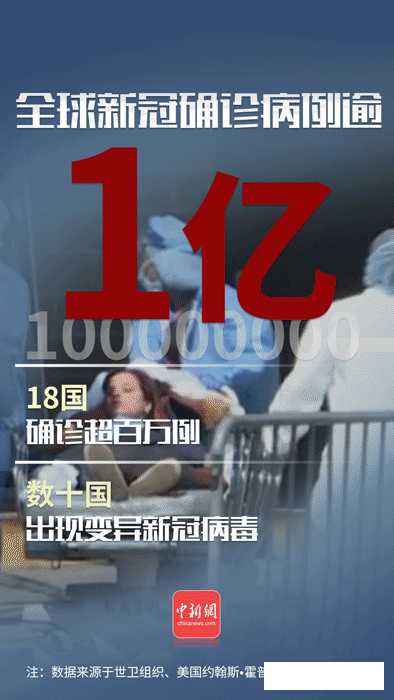 100000000人!这是一个如此庞大的数字,它意味着,病毒侵入了地球上约1/70的人类,让人触目惊心;这是一个无比悲痛的数字,它意味着人类在与病毒赛跑的生死之战中,仍将继续争分夺秒,提速,再提速……