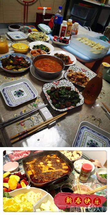 既然是氛围组,那热闹的年夜饭必不可少。尽管没有父母张罗的一桌好饭,但不少年轻人选择和朋友、同学、室友拼着过年,大家一起动手包饺子、做大餐、煮火锅,同样吃得开心。除夕那晚,朋友圈被新式年夜饭刷屏,大家争先晒出自己亲手做的满桌美食,很多还是“年夜饭处女秀”。