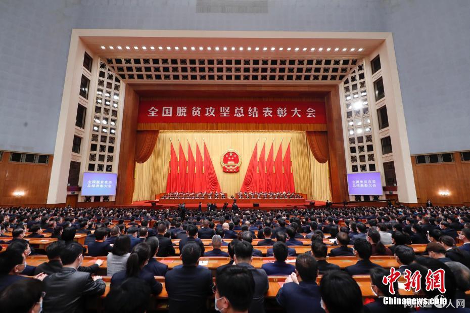 2月25日,全国脱贫攻坚总结表彰大会在北京人民大会堂隆重举行。 中新社记者 盛佳鹏 摄