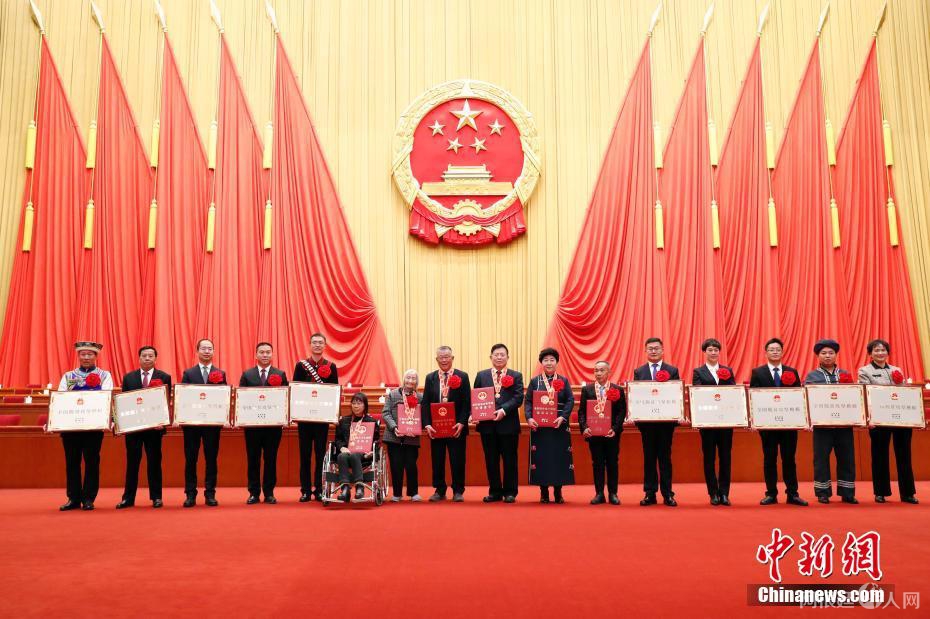 2月25日,全国脱贫攻坚总结表彰大会在北京人民大会堂隆重举行。图为全国脱贫攻坚楷模荣誉称号获得者在大会后合影。 中新社记者 盛佳鹏 摄
