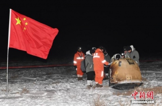资料图:嫦娥五号返回器安全着陆。汪江波 摄