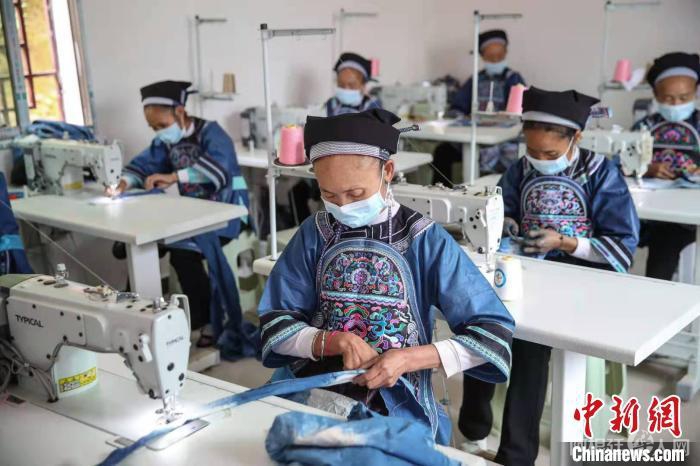 资料图:搬迁户在贵州紫云扶贫车间加工刺绣订单。 瞿宏伦 摄