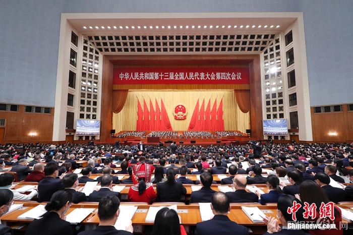 3月5日,第十三届全国人民代表大会第四次会议在北京人民大会堂开幕。 中新社记者 盛佳鹏 摄