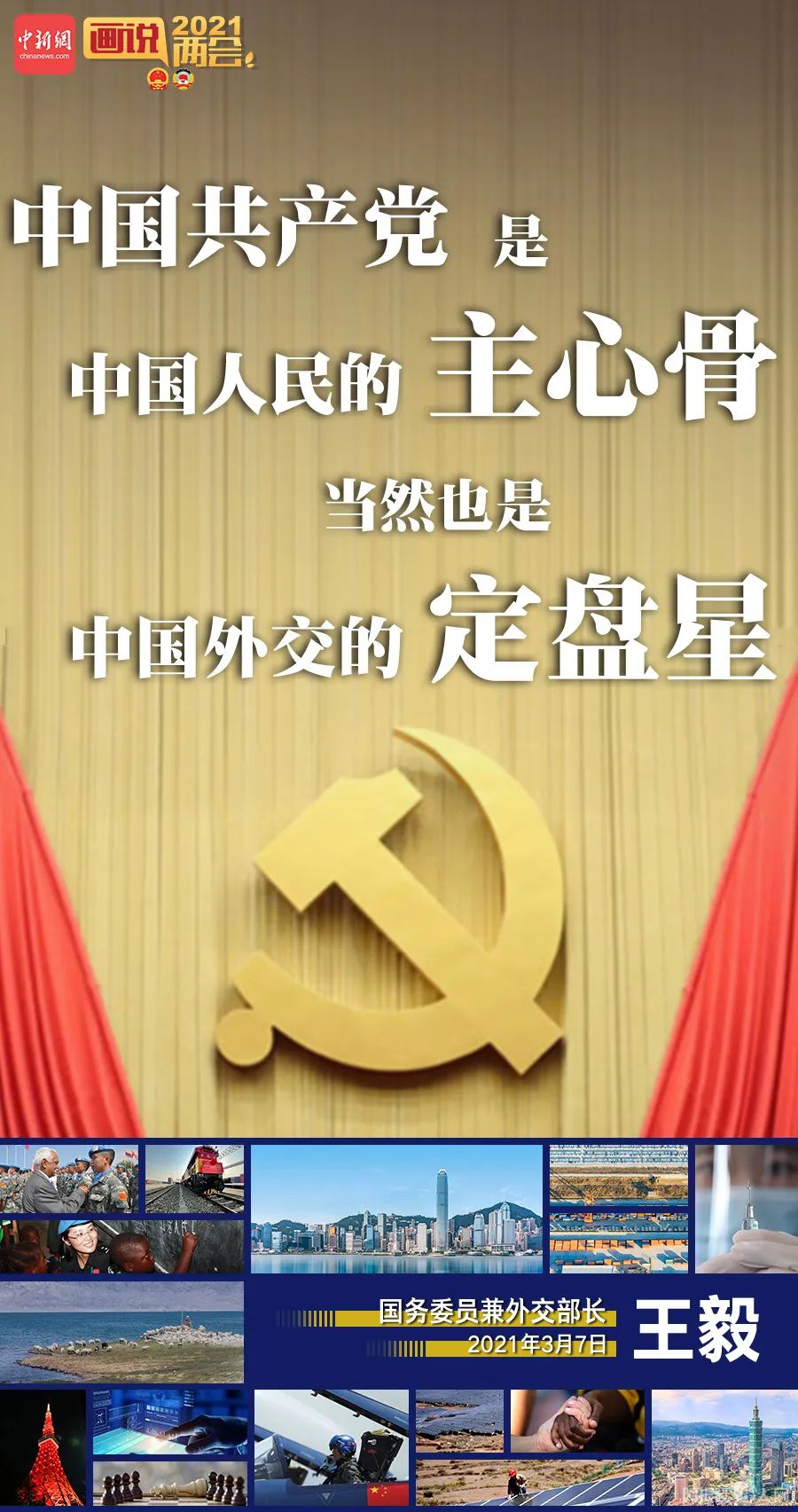 十三届全国人大四次会议于3月7日(星期日)下午3时在人民大会堂新闻发布厅举行记者会,邀请国务委员兼外交部长王毅就“中国外交政策和对外关系”相关问题回答中外记者提问。一组海报概览铿锵外交声音↓↓↓