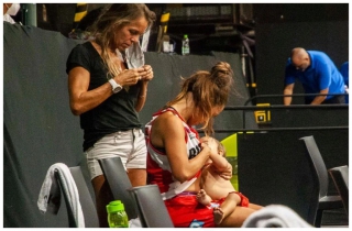 在一场比赛的中场休息时,因为孩子在哭,随后她向教练去申请给宝宝喂奶。然而,这正是最平凡的举动,却戳中了很多人的泪点。