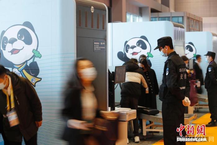 资料图:第三届中国国际进口博览会,参会者通过人员信息核对、红外无感测温、安检进入场馆。 中新社记者 殷立勤 摄