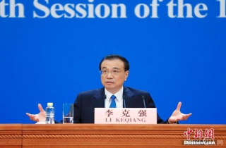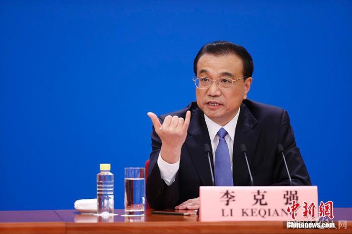 3月11日,中国国务院总理李克强在北京人民大会堂出席记者会并回答中外记者提问。图为李克强总理在记者会上表示,中国今年提出6%以上的经济增长预期目标不低了。 中新社记者 杜洋 摄