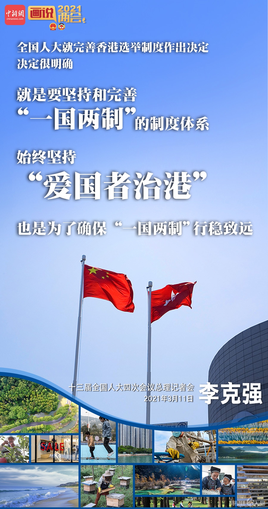 当天,《全国人民代表大会关于完善香港特别行政区选举制度的决定》已正式表决通过。李克强称,该决定很明确,就是要坚持和完善“一国两制”的制度体系,始终坚持“爱国者治港”,也是为了确保“一国两制”行稳致远。