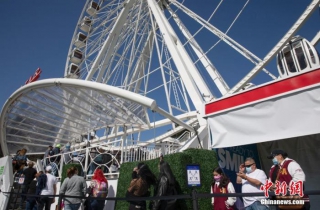 资料图:当地时间3月12日,游客在美国加利福尼亚州旧金山金门公园内排队等候乘坐摩天轮。日前,旧金山包括摩天轮在内的多种设施陆续重新开放。 中新社记者 刘关关 摄