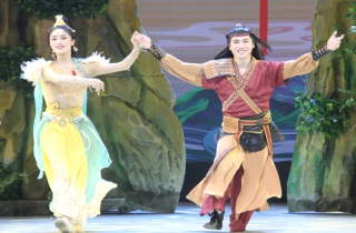 《巫山神女》分四个篇章,讲述神女瑶姬与人类部落少年阿泽相知相爱,在面对水妖来犯时共同御敌,最终瑶姬以全部神力镇压洪水,化身神女峰的凄美爱情故事和舍身护佑感人故事。