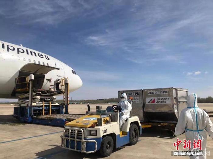 当地时间3月29日上午,菲律宾航空公司PR361航班,正在北京装载全菲民众高度关注的菲律宾政府向中国采购的首批科兴疫苗。当天下午4时,这批疫苗运抵马尼拉维拉莫尔军用基地。 中新社发 菲律宾航空公司供图
