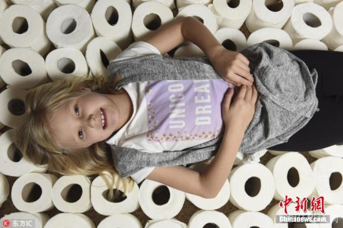 资料图:英国特尔福德小女孩Maggie患有阿斯伯格综合症、感觉认知障碍(SPD)和多动症,最爱与厕纸作伴。 图片来源:东方IC 版权作品 请勿转载