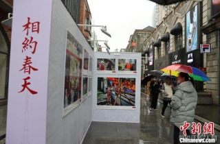 4月7日,“相约春天”抗疫图片展在武汉楚河汉街展出吸引市民参观 张畅 摄