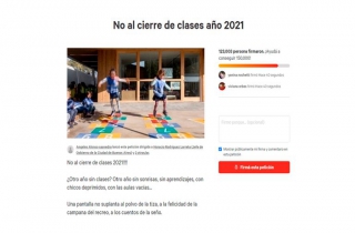 (阿根廷华人网4月15日讯/Andres)阿根廷国家总统阿尔贝托·费尔南德斯昨天宣布了一系列防止新冠病毒第二波疫情造成严重冲击的限制措施,其中就包括暂停现场教学。而就在费尔南德斯的讲话结束后不久,在Change.org这个请愿平台的一封请愿书开始在阿根廷社交网络中流传开来,其标题为“对中断2021学年说不!”。