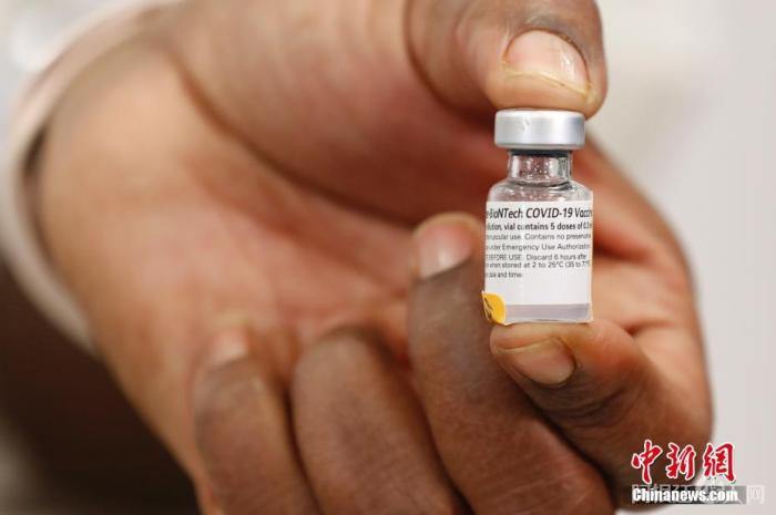 资料图:2020年12月,纽约长岛犹太医疗中心护士展示美国首批新冠疫苗。当日,辉瑞公司首批近300万剂新冠疫苗陆续运抵美国各地。 中新社记者 廖攀 摄