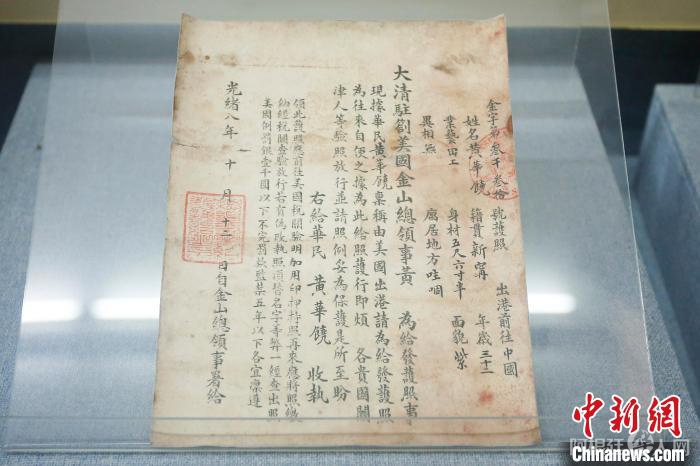图为江门五邑华侨华人博物馆展示的中国早期移民护照。 王骏 摄