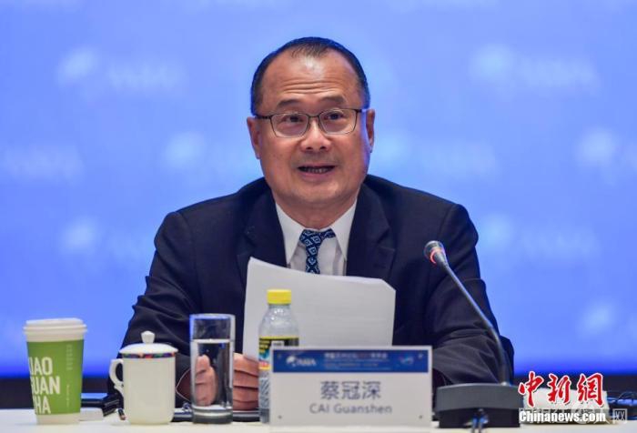 图为全国政协常委、中华海外联谊会常务理事、新华集团董事长蔡冠深出席并发言。 中新社记者 骆云飞 摄