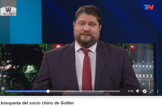 (阿根廷华人网4月27日讯/朱莉)布省卫生厅长Daniel Gollan的妻子Gladys Raquel Mendez与一位神秘的中国合作伙伴成立了一家公司,向布省General Rodriguez市政府供应食品。TN电视台记者Nicolas Winazki在他的新节目《W: Ver & Rever》中对事件进行了跟踪。据了解,这笔交易价值将高达85万比索。