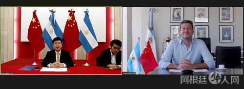 2021年4月29日,驻阿根廷大使邹肖力线上会见阿根廷旅游和体育部长拉蒙斯。