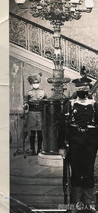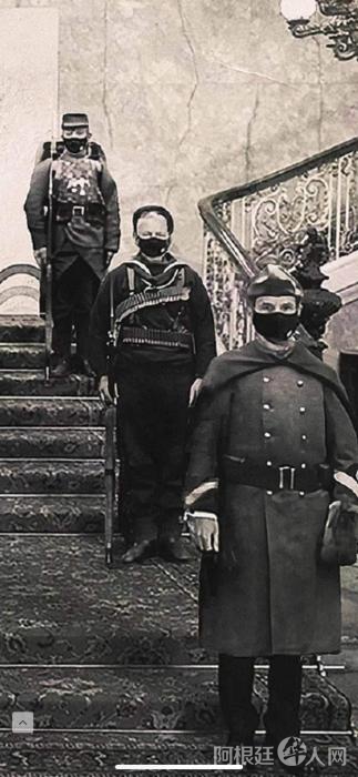 细节二,“老照片”中的人跟八国联军的打扮一样,但多了个口罩。