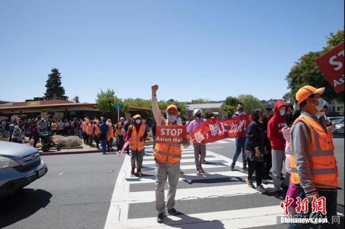 资料图:当地时间2021年4月17日,数百人在美国旧金山湾区密尔布雷市参加反对歧视亚裔的集会。随着新冠疫情的暴发和蔓延,美国社会针对亚裔群体的歧视和暴力伤害事件激增。中新社记者 刘关关 摄