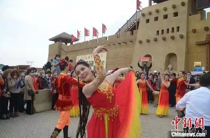 资料图:吐鲁番交河驿·坎儿井源景区献上舞蹈表演,欢迎团队游客。 苟继鹏 摄