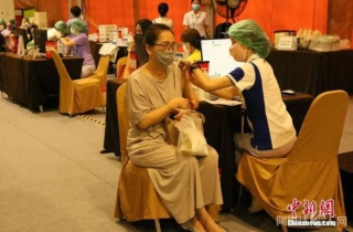 资料图:5月12日,泰国医护人员在为民众接种疫苗。(王国安 摄)