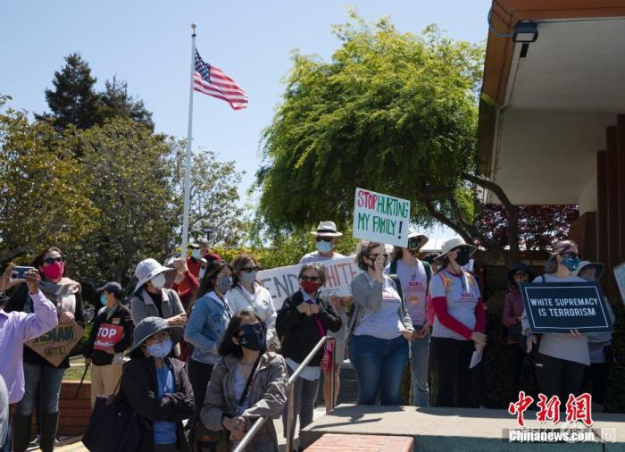 当地时间4月17日,数百人在美国旧金山湾区密尔布雷市参加反对歧视亚裔的集会。随着新冠疫情的暴发和蔓延,美国社会针对亚裔群体的歧视和暴力伤害事件激增。 中新社记者 刘关关 摄