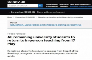 5月17日,英国政府官网发布消息,即日起,所有大学生,包括国际留学生在内,都可以重返校园,线下教育将全面恢复。不过,在秋季学期授课方面,各个大学都有不同的安排。