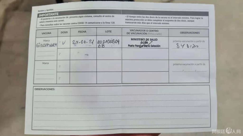 下面华人网为您大致介绍一下在Once区附近的Parque de la estacion”接种中心接种的具体流程。