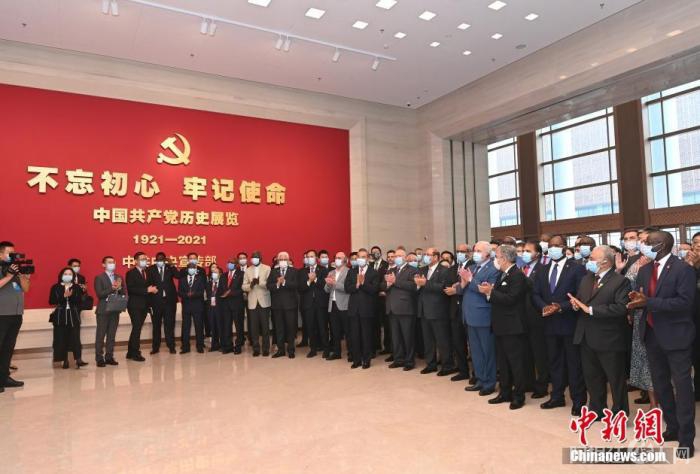 中新社北京6月24日电 (记者 黄钰钦 李纯 李京泽)中国国务委员兼外交部长王毅24日上午邀请外国驻华使节和国际组织驻华代表共同参观“‘不忘初心、牢记使命’中国共产党历史展览”。