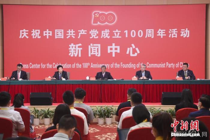 6月28日,庆祝中国共产党成立100周年活动新闻中心在北京举办第二场新闻发布会,邀请中央纪委副书记、国家监委副主任肖培,中央统战部副部长许又声,中央对外联络部副部长郭业洲,中央财办分管日常工作的副主任韩文秀结合各部门工作职能介绍情况,并回答记者提问。 中新社记者 侯宇 摄
