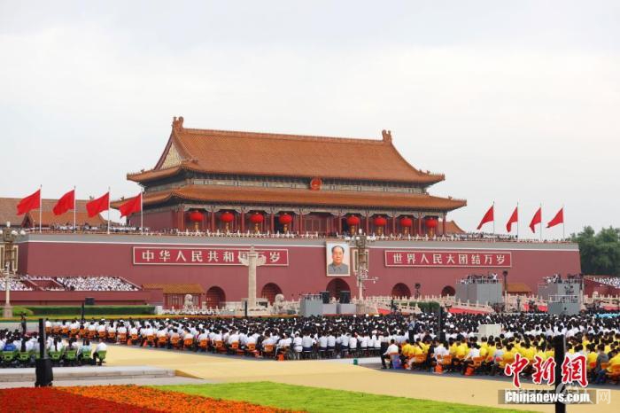 7月1日上午,庆祝中国共产党成立100周年大会在北京天安门广场隆重举行。 中新社记者 韩海丹 摄