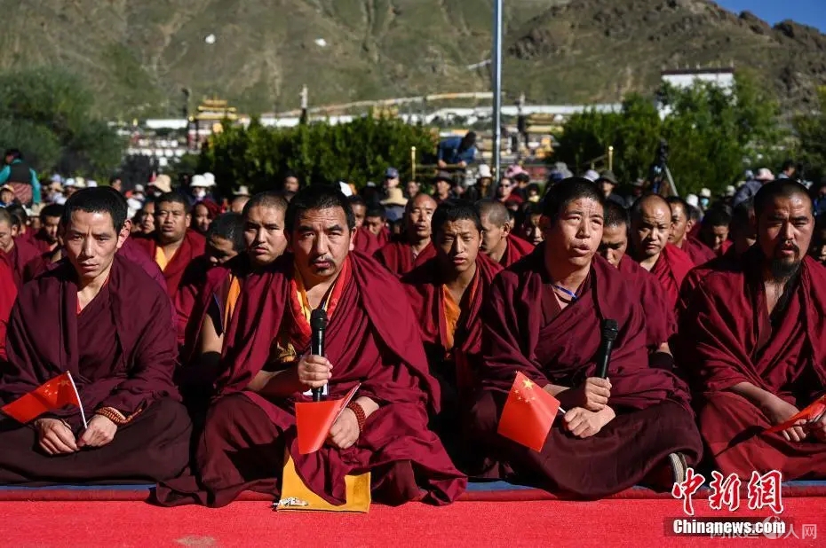 资料图:西藏藏传佛教界僧尼集体念诵吉祥祈福经。