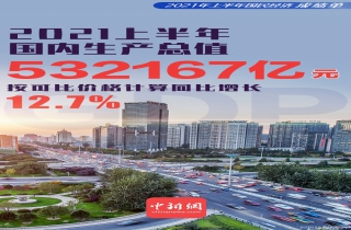 中新网客户端北京7月15日电 (记者 李金磊)7月15日,国家统计局公布上半年中国经济数据。初步核算,上半年国内生产总值532167亿元,按可比价格计算同比增长12.7%,比一季度回落5.6个百分点;两年平均增长5.3%,两年平均增速比一季度加快0.3个百分点。分季度看,一季度同比增长18.3%,两年平均增长5.0%;二季度增长7.9%,两年平均增长5.5%。(完)