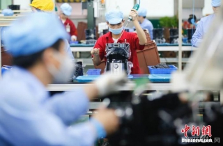 资料图:4月19日,工人在广东新宝电器流水线上生产咖啡机。 中新社记者 王骏 摄