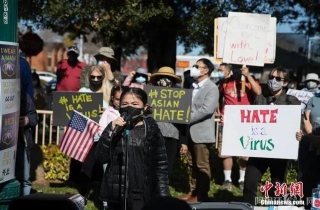 资料图:2021年2月27日,数百人在美国旧金山湾区圣马特奥市参加反对歧视亚裔的集会。中新社记者 刘关关 摄