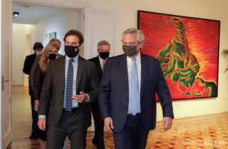 (阿根廷华人网8月13日讯 黄东)当地时间本周五晚间,阿根廷总统费尔南德斯在奥利沃斯府邸会见了到访的乌拉圭总统拉卡列,双方将就双边关系及地区相关多种议题进行交流。