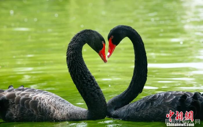 资料图:湖中的情侣天鹅。中新社发 刘冉阳 摄