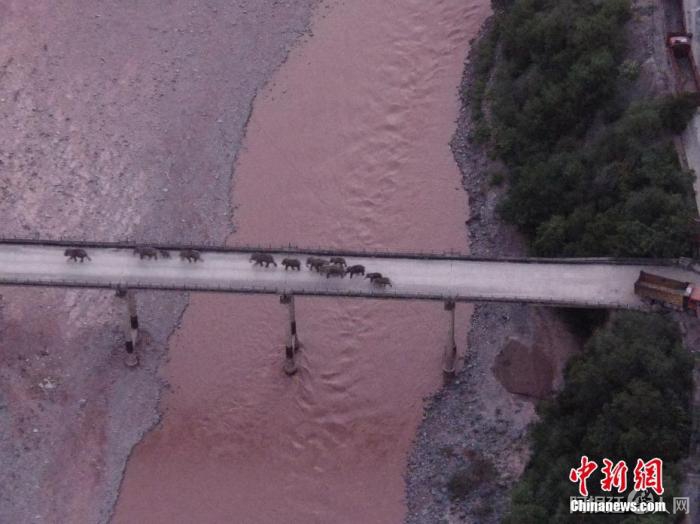 北移亚洲象安全渡过元江。云南省森林消防总队 供图